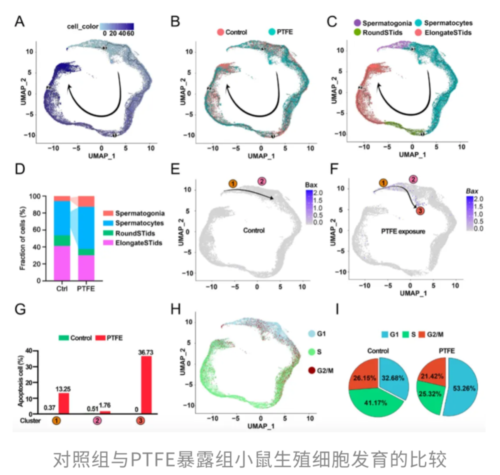 随后,研究人员对PTFE「伤精之路」进行了机制分析。他们发现,PTFE从多个环节打乱精子生成的正常节奏。它作用于精原细胞和精母细胞,一边诱导细胞走向凋亡,一边拖慢DNA损伤修复的进程,相当于在精子「更新换代」的关键环节踩下了「刹车」。