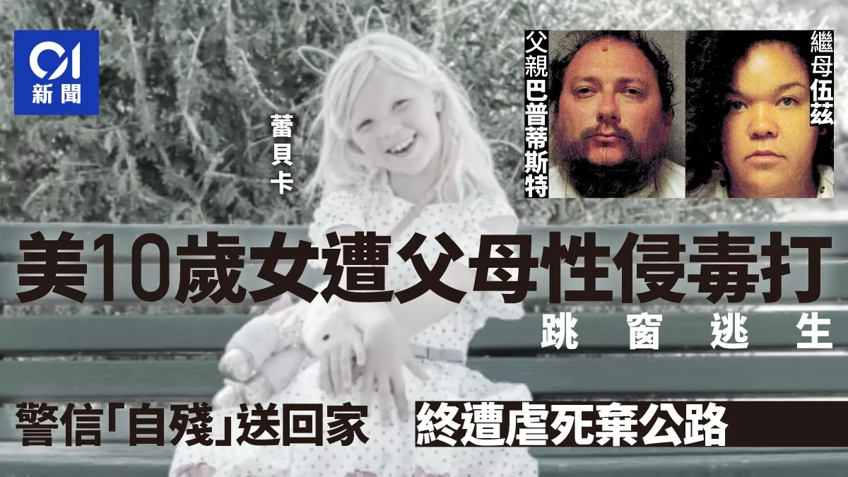 根据法院与当地媒体报道,女童蕾贝卡(Rebekah Baptiste)长期受父亲及其继母虐待,2024年10月曾从公寓二楼跳窗后奔向附近的商店求救。她向警方与医疗人员透露,继母伍兹(Anicia Woods)经常强迫她跑圈受罚,并用刷子、皮带抽打她的手背与脚底。