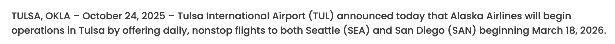 Alaska Airlines计划恢复从Everett Paine Field(靠近西雅图的另一个机场)直飞波特兰的航班,预计6 月起每日运营,新航班将更方便商务及周末旅行。此外,新航线也将覆盖如Tulsa、Arcata-Eureka等美国城市,这意味着无论是跨州度假还是探亲访友,可以有更多选择。