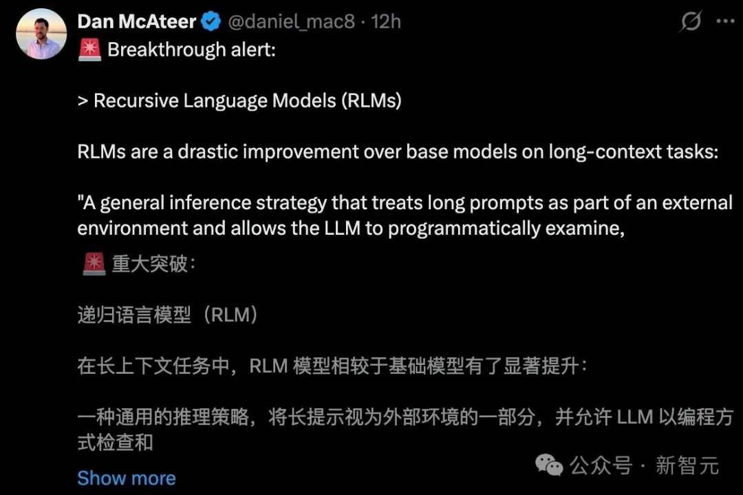 在复杂推理任务上,仅仅让模型多过2-4遍,正确率就能提升10%-25%在超长文档处理上,RLM(递归语言模型)在1000万+token的规模下,依然保持稳定表现,而传统模型直接崩盘!这啥概念?