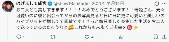 “你们俩都太美了!!!恭喜!!!瑞姬你本来就很可爱,但是自从你和男友相遇之后,看着你的照片,一天比一天更可爱更漂亮了,真是太好了!你们俩一定是每天都过着幸福美满的生活吧。祝你们未来幸福美满!”