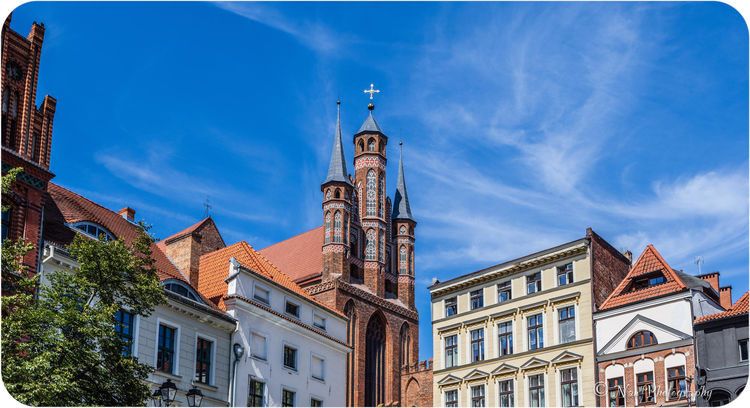 托伦城市不大,圣母玛利亚教堂(Church of the Blessed Virgin Mary)矗立在广场上,外部是厚重的托伦红砖。