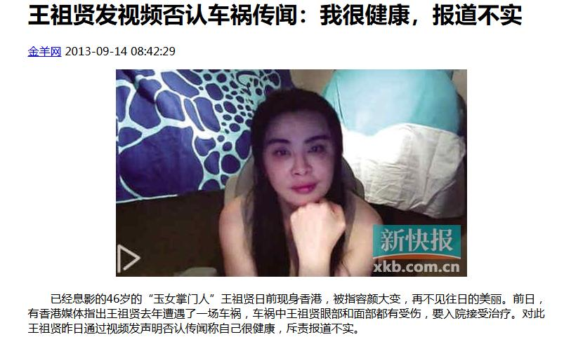 因为这些报道,王祖贤不得不亲自站出来辟谣,她还自拍了一段视频,以证实媒体所言不实。