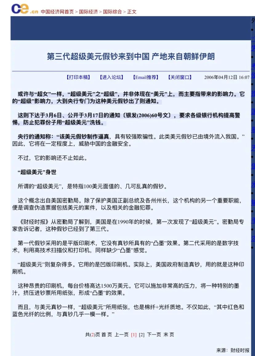 自联合国成立以来,朝鲜是第一个,应该也是唯一一个被发现以政府名义印制美元假钞的国家。