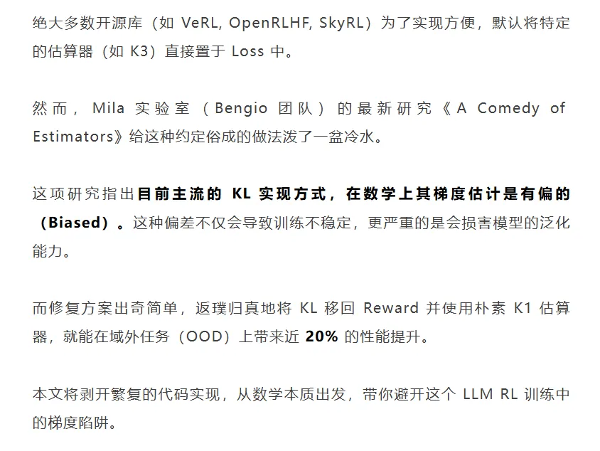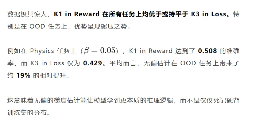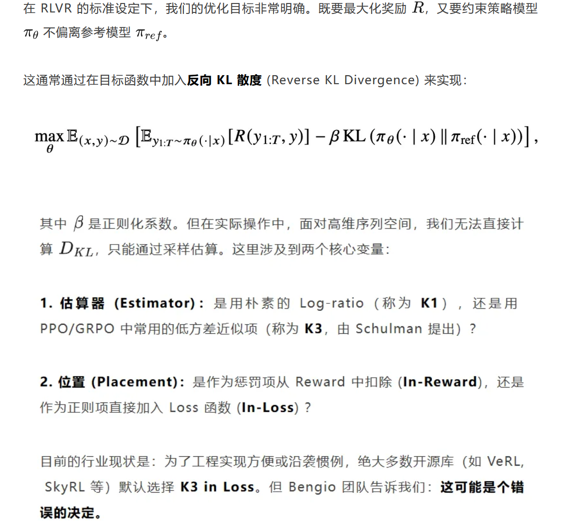 首先,千万不要尝试 K3 in Reward。实验表明,这种配置会引入巨大的梯度方差,导致模型训练瞬间崩溃。