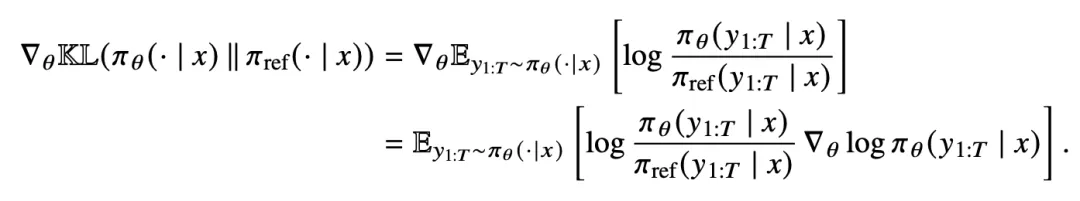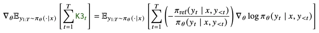 对于序列级反向 KL 散度,其真实梯度的数学形式如下 :