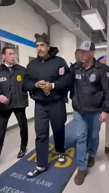 白宫稍早公开了一段委内瑞拉总统马杜罗(NicolásMaduro)在美国领土被拘留的最新画面,视频中他双手被戴上镣铐,在干员押解下走过长廊。(截取自X@@RapidResponse47)