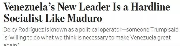 现在,川普正指望这位左翼人物德尔西·罗德里格斯——马杜罗的副总统、于周六成为国家事实上的领导人,与美国合作,正如川普所说,美国正“开始掌控委内瑞拉”。