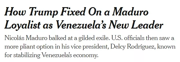 尽管如此,特朗普政府仍决定放弃在党内有盟友、获得诺贝尔奖、被认为赢得2024年大选的马查多,转而给予马杜罗的副手一个机会。