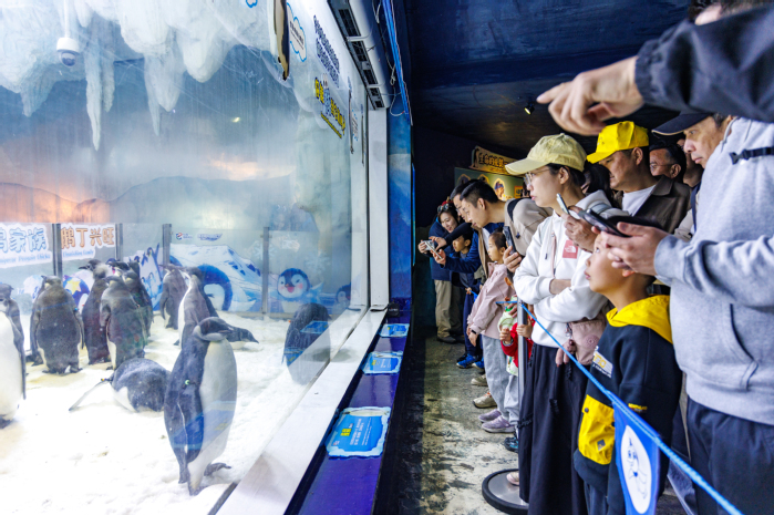 游客在横琴长隆观赏帝企鹅宝宝。横琴长隆供图,下同