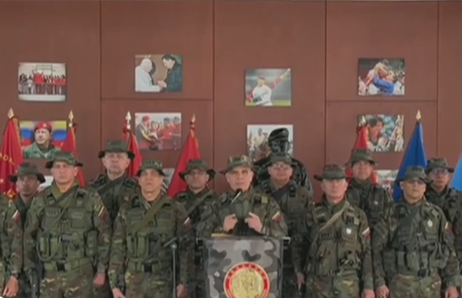 当地时间1月4日上午,委内瑞拉国防部长帕德里诺·洛佩斯发表电视讲话。 视频截图