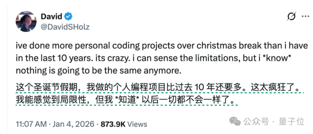 以防你不知道编程Agent现在有多强,硅谷大佬们新年收假回来,纷纷写起了小作文。