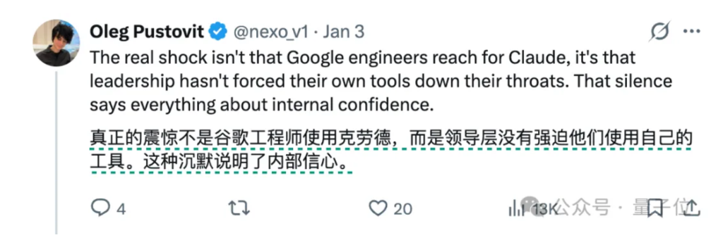 评论区有人对谷歌允许自家工程师使用竞品感到讶异。