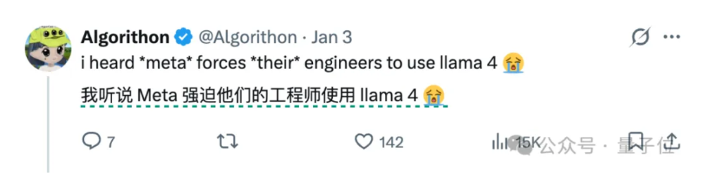 也有人透露了小八卦:听说Meta强迫自家程序员得用llama 4。