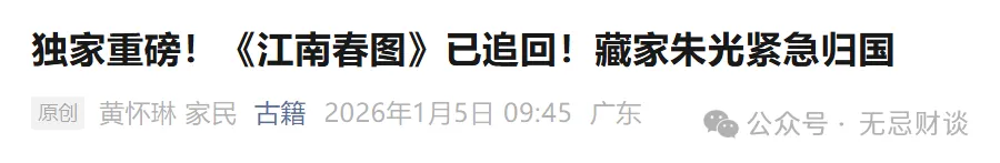 2026年新年伊始,《江南春》被追回并进入南京博物院库房,相关权属、法律、学术等问题有望在规范、公开的框架下推进处理。