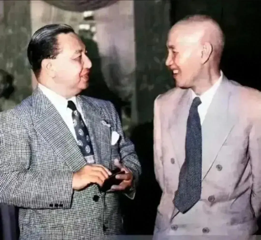 1940至1949年,西装着装频繁出现在外交和公务活动中,如1942年访印期间与印度总督合影,以及1943年开罗会议上与盟国领导人会面;1949年,他身着西装出国访问,试图为局势变化寻求出路,照片中虽面带微笑,但透露出困境中的压力。