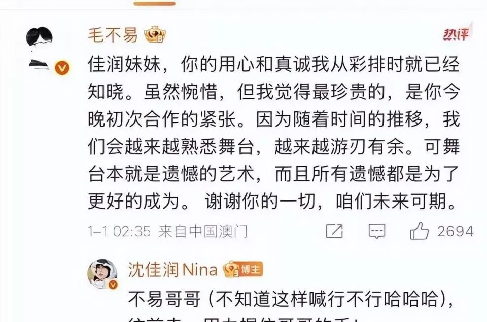 沈佳润道歉那晚,毛不易的回复冲上了热一。
