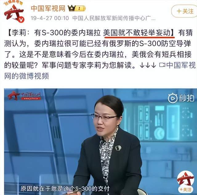 其实,不把自己当外人的还有国内的许多专家,其预测重大军事行动的能力居然比德云社的相声还搞笑,这就很值得深思了。经常在央视军事节目露脸的专家李莉认为:委内瑞拉的军事实力不弱,有S-300导弹,美国绝对不敢轻举妄动。