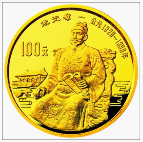 中国人民银行于1990年发行的中国杰出历史人物金银纪念币(第7组)中的一枚金币以朱元璋造像为其背面图案,以纪念这位“中国历史上驱逐胡虏,除暴乱,拯救民族,雪中国近百年之亡国耻,废除蒙古人制定的种族等级政策,恢复了中华的一代布衣帝王。”