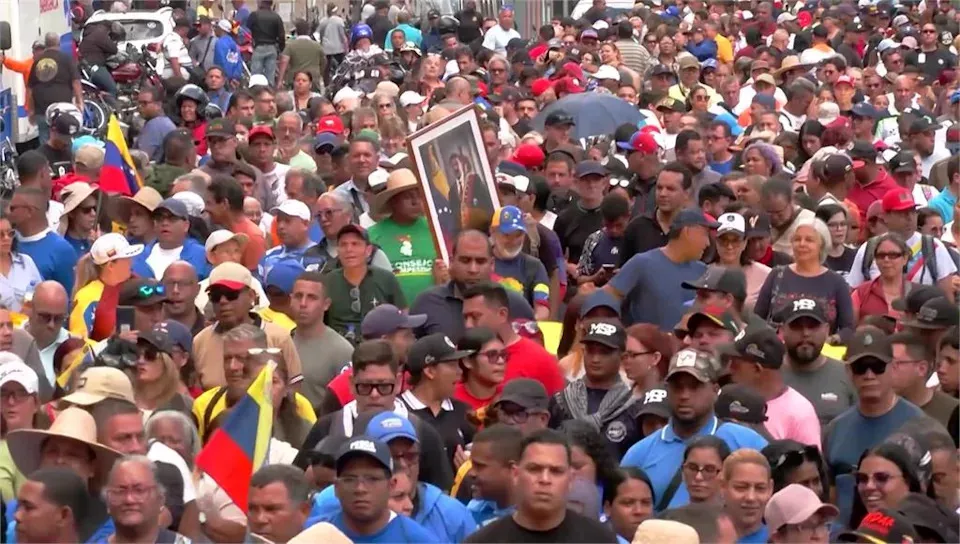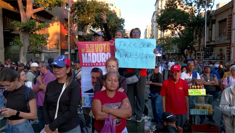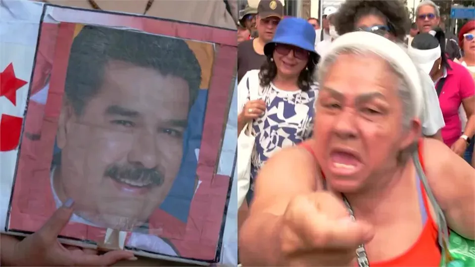 马杜洛的支持者也持续上街游行举牌抗议,还有名妇人面露不满,愤怒高喊着“美国佬,把马杜洛还给我们!”抗议美国强行掳走一国元首,并拒绝与美国合作。