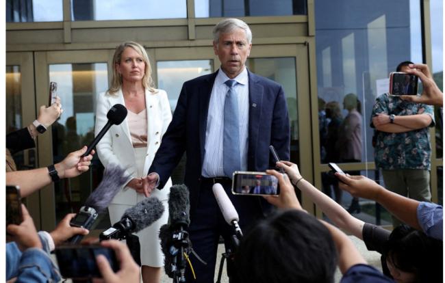 图为2024年6月26日,律师波拉克(Barry Pollack)代表维基解密创始人阿桑奇(Julian Assange)在塞班岛出庭。(Reuters)