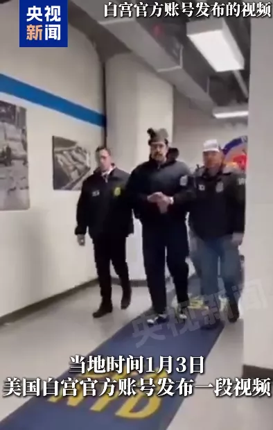央视记者获悉,美国白宫官方账号发布了一段视频,记录了疑似是马杜罗被押送抵达美国缉毒署(DEA)办公室的画面。