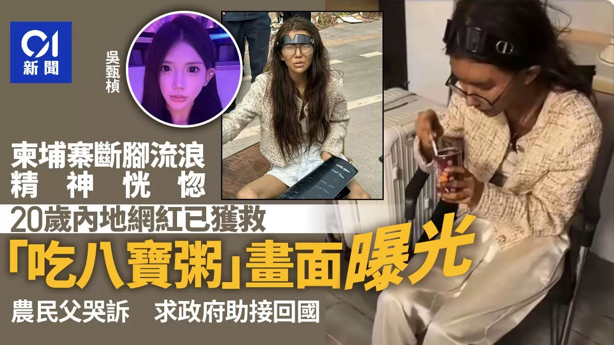 近日,20岁内地网红吴甄桢(Umi)双腿骨折、精神恍惚流浪柬埔寨街头,引发全网关注,甚至惊动中国驻柬埔寨大使馆救人。据网民最新爆料,吴甄桢已被送往救助站,吃上八宝粥了。