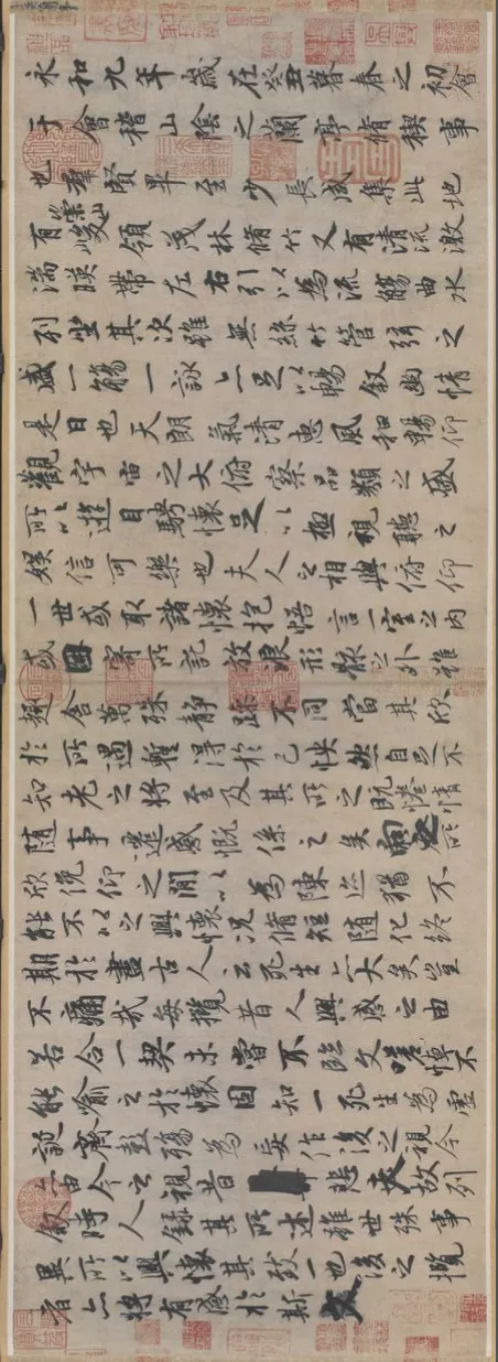 唐代以后,神龙本《兰亭序》历经多位名人收藏,上面密密麻麻盖着许多印章,如郭天锡、杨士奇、项元汴、乾隆帝等都曾是“神龙本”的收藏家。