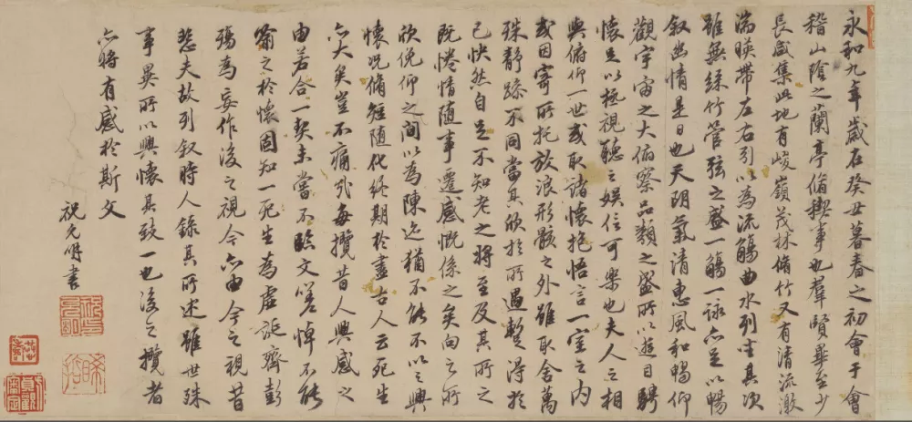 从东晋永和九年(353年)兰亭之会到唐贞观二十三年(649年)李世民去世,《兰亭序》真迹在世间流传的时间不过300年左右,却惊艳了千年的时光。