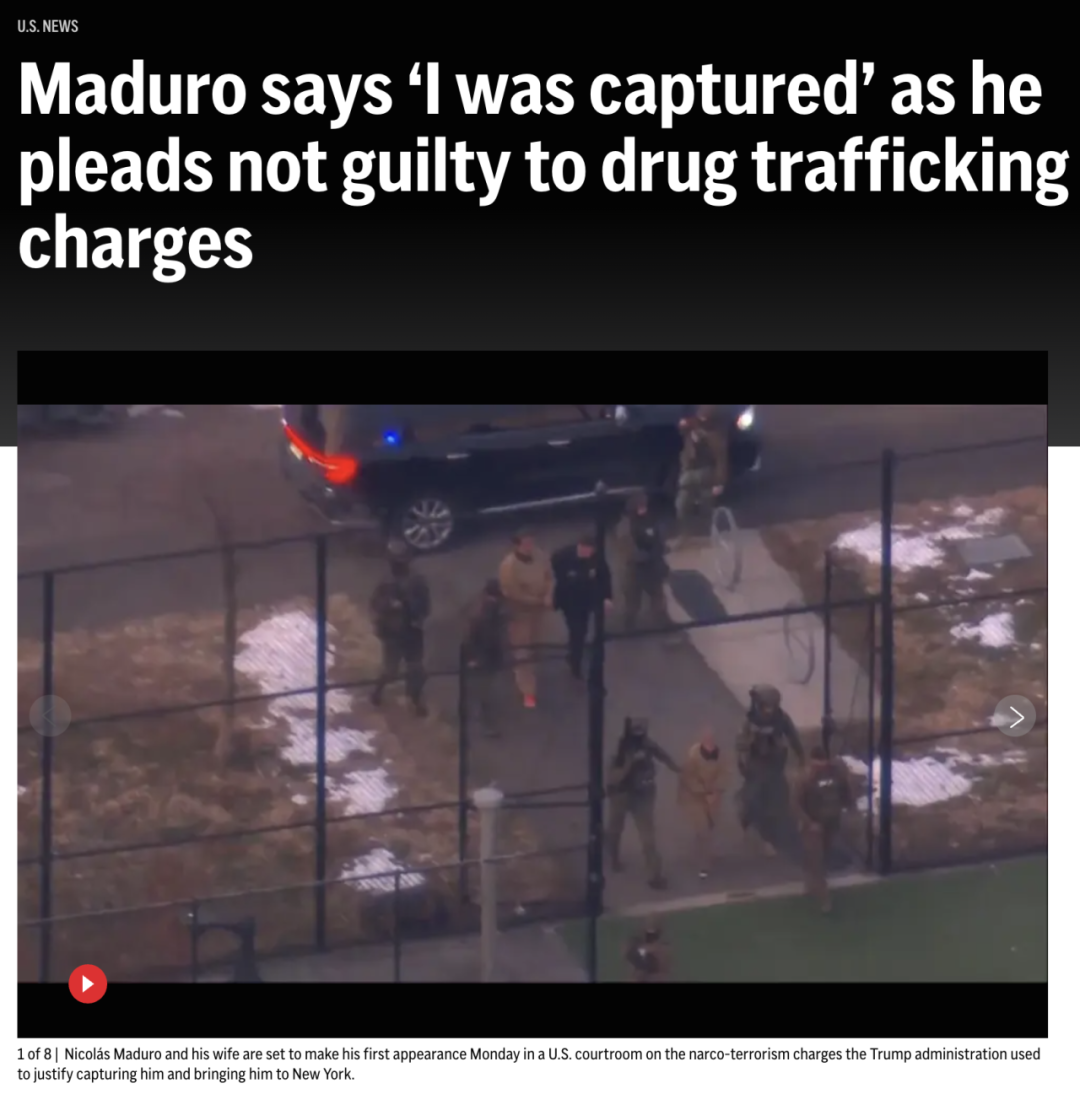 随着委内瑞拉总统马杜罗在一次闪电般的军事行动中被美军“带离”加拉加斯(Caracas),今天,这一事件迎来了最高潮:2026年1月5日,马杜罗夫妇在纽约曼哈顿联邦法院首次出庭受审。