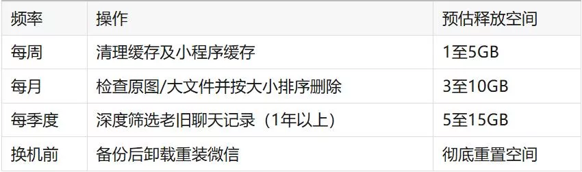 路径:微信 → 我 → 设置 → 通用 → 存储空间 → 清理缓存→ 临时文件(小程序垃圾、预览图等)可直接清除,不影响聊天记录。