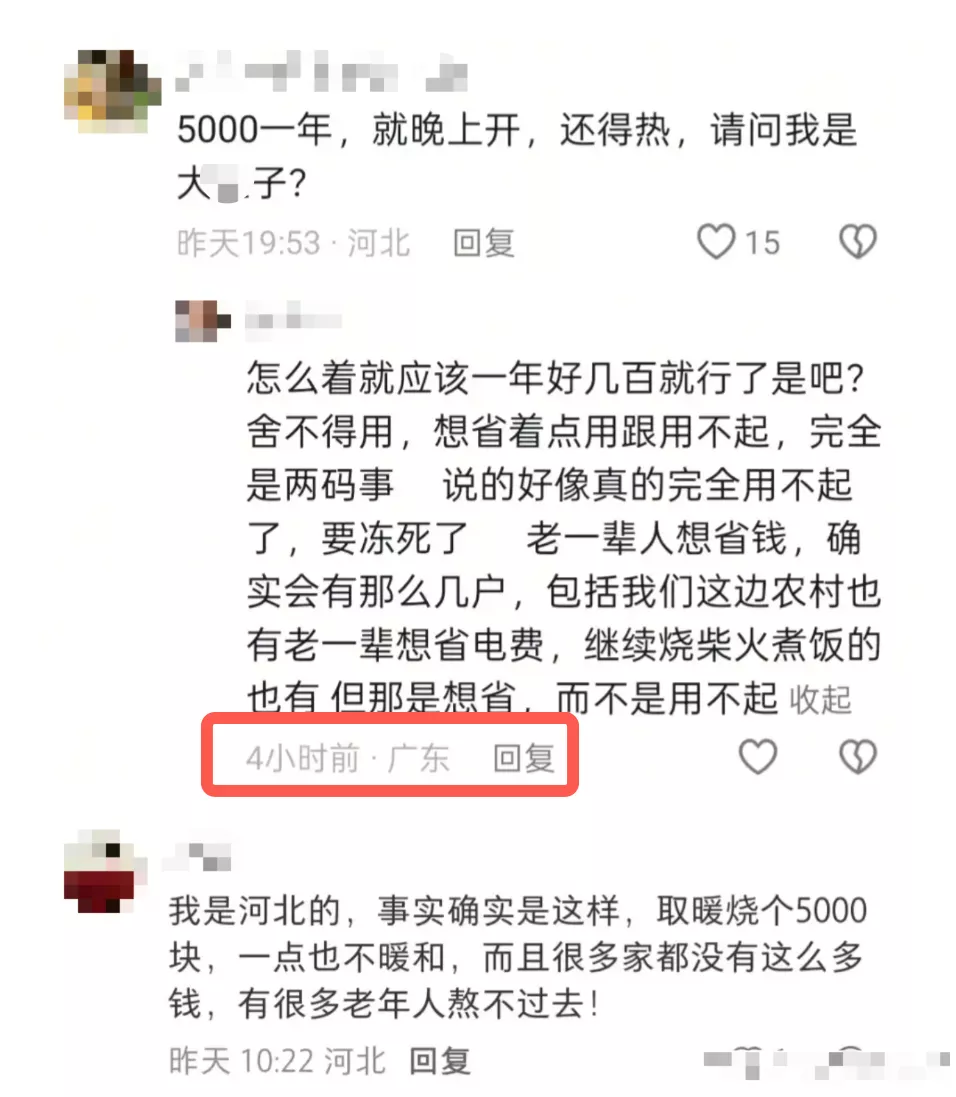 当然,也有说精打细算下来其实取暖很划算,不开都是因为老人观念问题的。