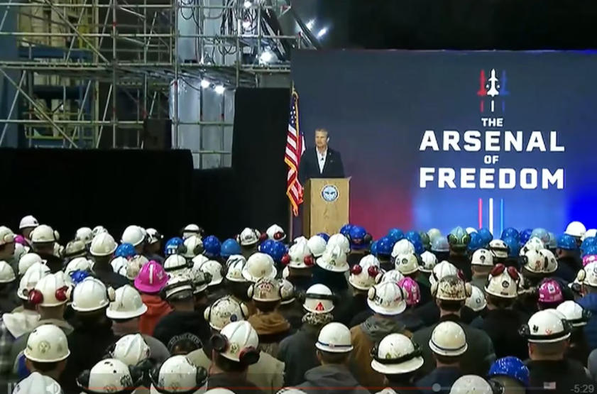 赫格塞思在纽波特纽斯造船厂发表演讲 五角大楼