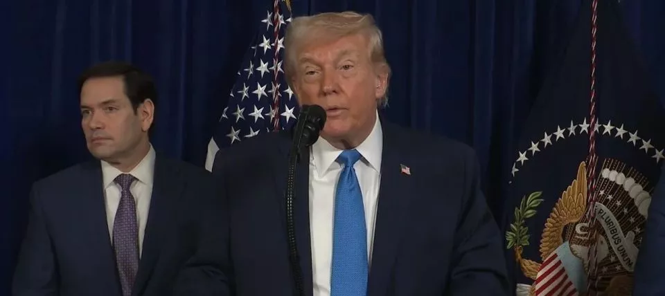 这张美国白宫发布的视频截图显示,1月3日,美国总统特朗普在佛罗里达州海湖庄园举行发布会/图源:新华社