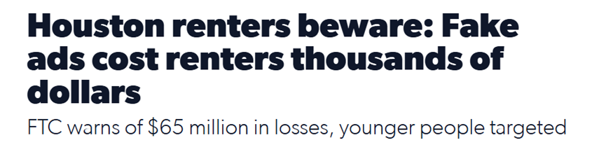 休斯顿近60%的居民选择租房居住,这使得租房诈骗成为许多人的重大威胁。