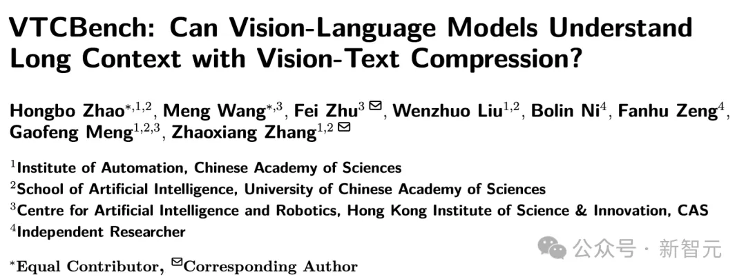 为了解答这一疑问,来自中科院自动化所、中国科学院香港创新研究院等机构的研究团队推出了首个专门针对视觉-文本压缩范式的基准测试——VTCBench。