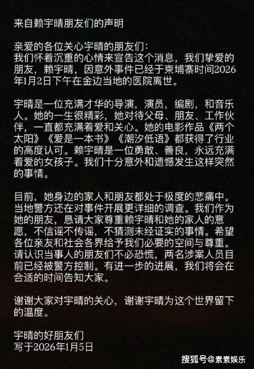 23岁女导演赖宇晴,在柬埔寨坠亡素素娱乐
