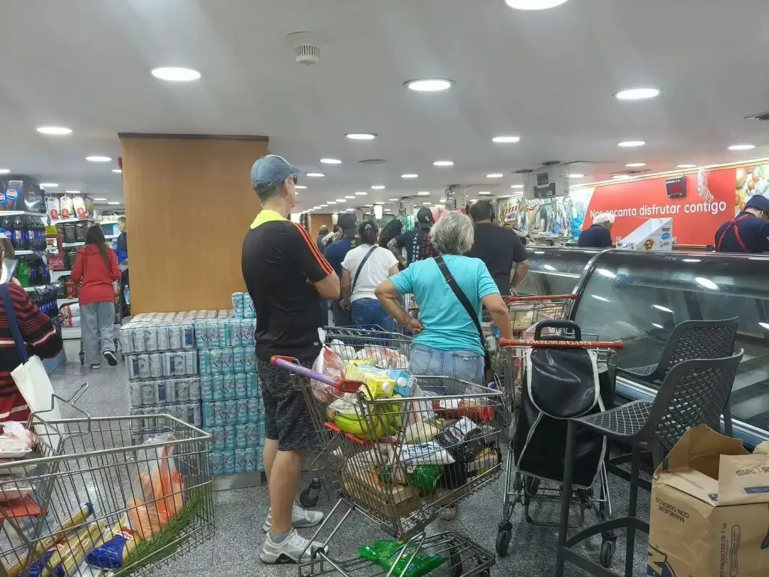 马杜罗被捕当天,小龙家附近的超市外排起长队。次日一早,小龙一起床便去超市排队。“虽然超市10点才开门,但当我7点半左右到达时,已经排了约六七十人的队伍。”