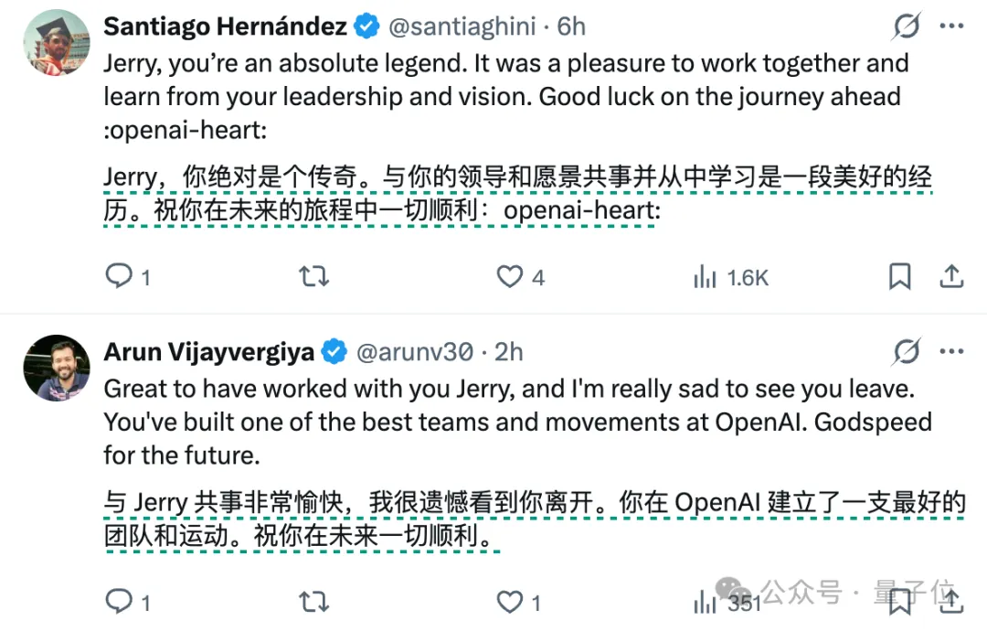 不少OpenAI在职人员都在这篇推文上回顾了和Jerry共事的愉快经历。