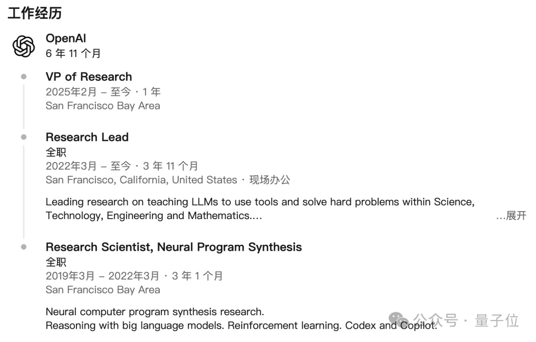 Jerry是GPT-4的首席研究员,领导了第一个推理模型o1的研究开发,对外被介绍为GPT-5推理机制和长思考能力的核心负责人。