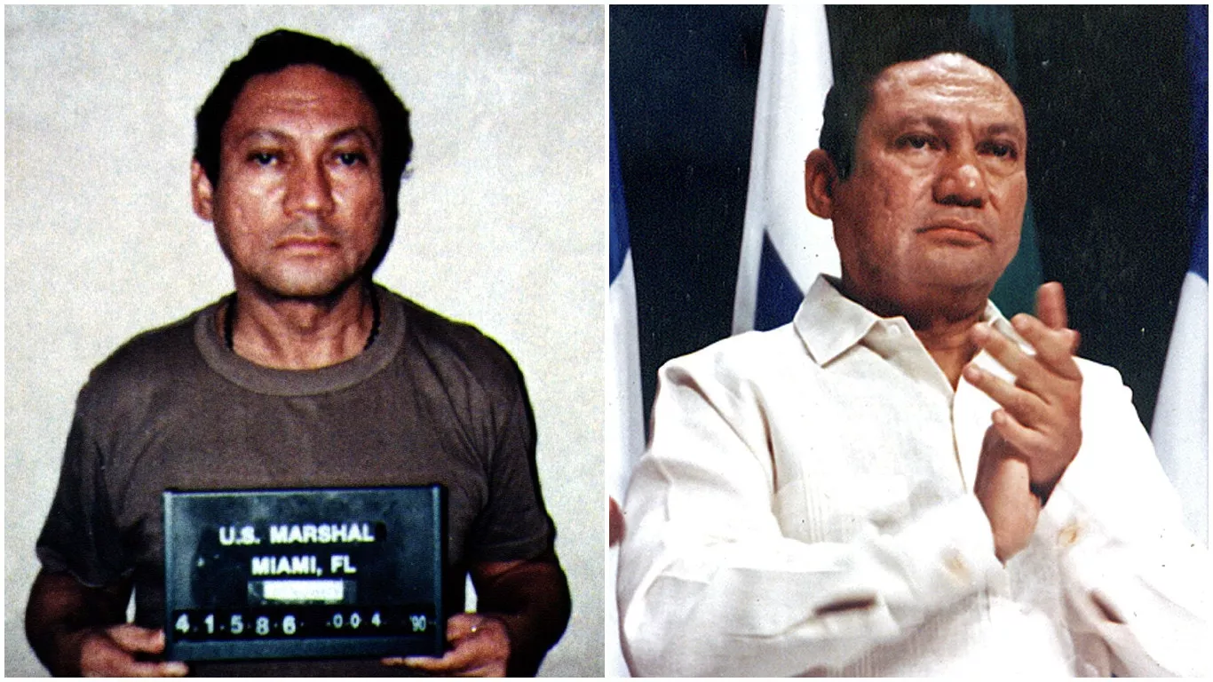 诺列加权倾一时,最终在美军入侵巴拿马后沦为阶下囚。图右为他1989年10月在巴拿马城出席记者会时的情形。图左为他1990年1月4日拍的档案照。(REUTERS/Alberto Lowe/File Photo )