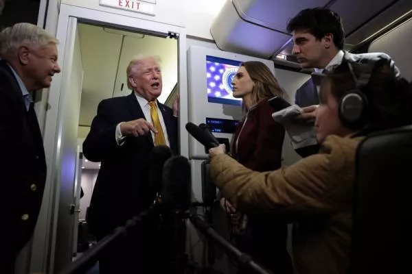当地时间1月4日,特朗普在空军一号上接受媒体采访IC photo