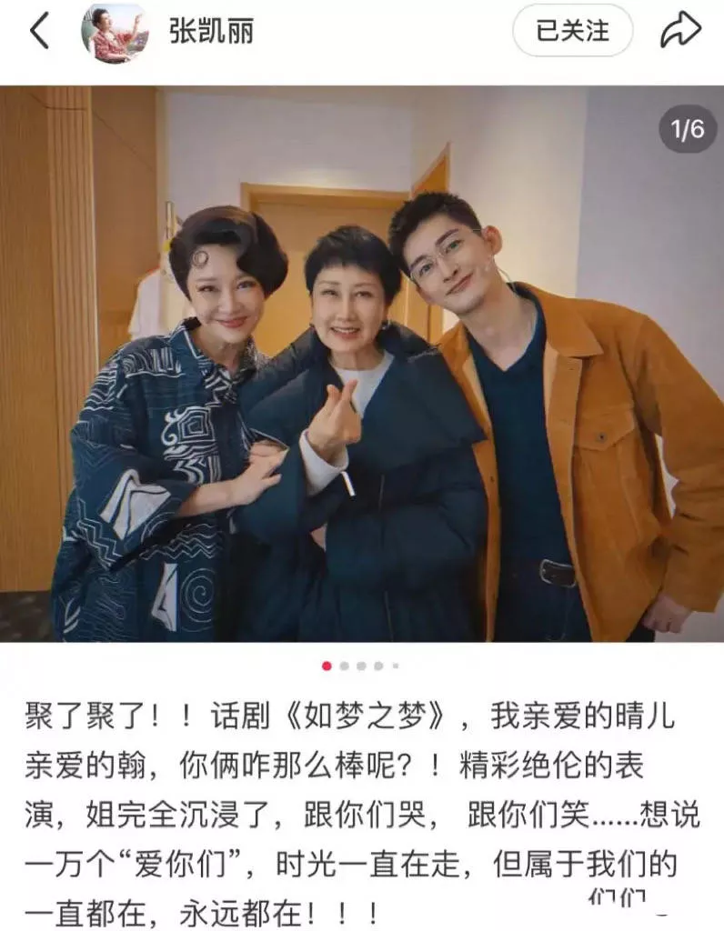 优雅的S曲线,偶尔低垂的眼眸,把人物细腻的小心思呈现出来。张翰也饰演了一个配角,还和张凯丽许晴一起合影了。