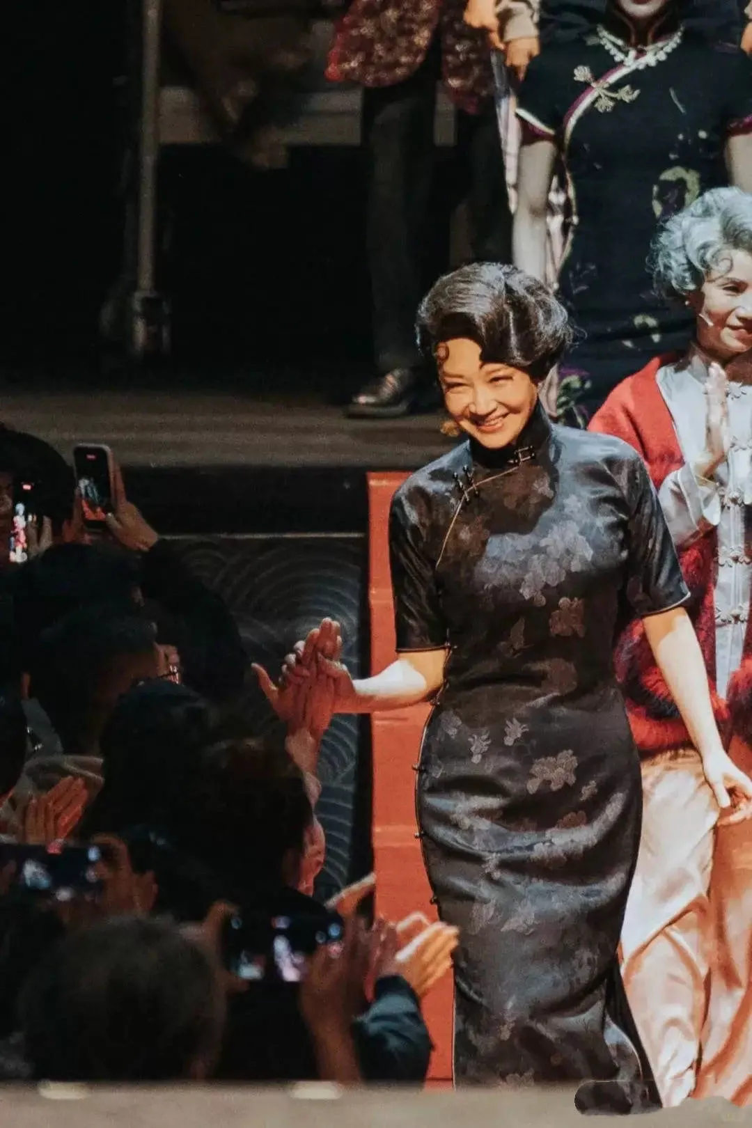 穿着修身的藏蓝色旗袍,留着复古的推波头,就像是上海名伶从那个时代走出来一样,代入感太强了。
