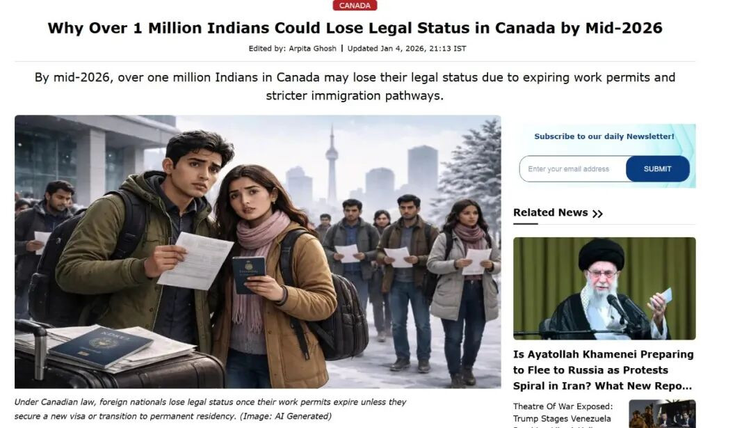 加拿大移民体系正面临一次前所未有的压力。多方数据显示,到2026年年中,可能有超过100万名印度籍人士在加拿大失去合法身份,原因主要集中在工签到期集中爆发,以及移民政策持续收紧。