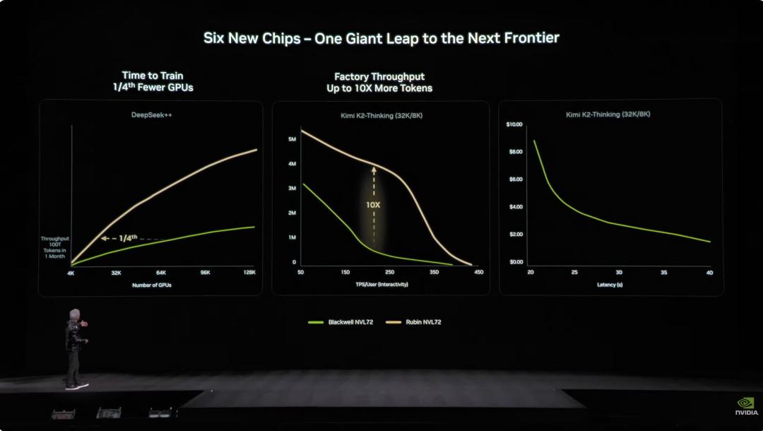 在Rubin架构的加持下,DeepSeek的模型训练时间被压缩到了原来的1/4,而Kimi K2 Thinking的推理吞吐量惊人地提升了10倍,与此同时,Token成本却被削减到了原来的1/10。这种“指数级”的降本增效,预示着 AI 推理即将进入真正的“平价时代”。