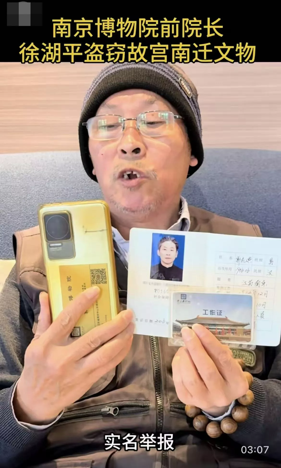 2025年12月21日,一名自称为南京博物院退休员工郭礼典的男子,实名举报南京博物院前院长徐湖平盗窃走私故宫南迁文物,致使数以千计国宝流失、损毁,同时还涉及行贿等。《亚洲周刊》曾在微博发文透露,警方曾于2025年12月24日围控徐湖平别墅十几个小时后,将徐湖平夫妇及保母带走。