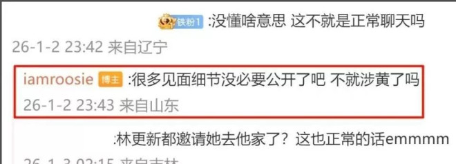 她晒出的聊天记录里,对话显得日常,林更新问她何时来北京,说“到时候看你吃东西”。
