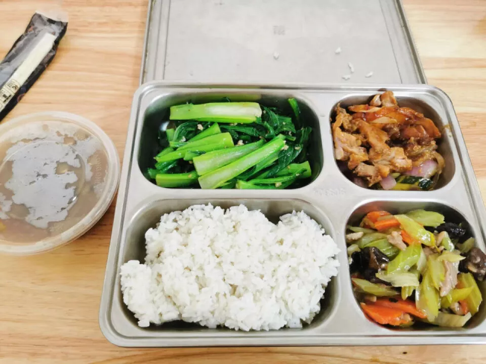 饭菜都是提前打包好的,堂食的装在不锈钢饭盒里,打包的装在普通饭盒里,所以就算赶时间也不用担心。