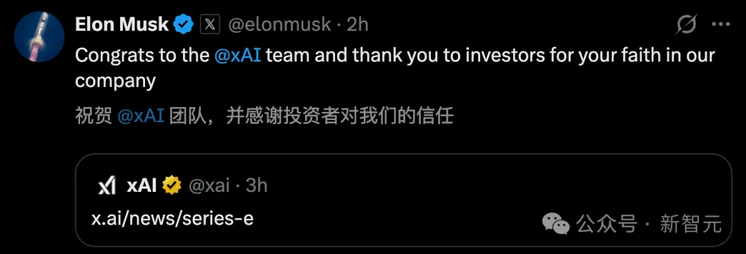 结果今天,xAI正式拿到了新一轮融资(E轮):金额高达200亿美元(1400亿),远超此前设定的150亿美元目标。